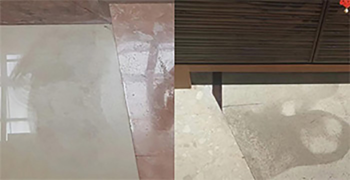 1、先用3M清潔墊配Dr.stone瓷磚清潔粉(按照1:10兌水),對污染部位均勻擦拭,徹底中和掉瓷磚表面的酸性殘留、洗凈瓷磚;