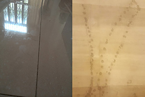 如果你從事著石材護理,在對石材研磨時,一不小心把旁邊的瓷磚磨到了,最后石材拋亮了,瓷磚就成這樣了